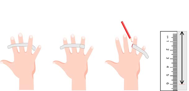 Enroulez simplement le ruban mesurant souple autour de la partie la plus large de votre poignet et notez la longueur. Si vous utilisez une simple bande de papier, marquez votre taille avec un stylo ou un crayon, puis utilisez une règle pour mesurer la longueur (l'extrémité de départ du papier doit être à la base de la règle, marquée 0). Cela correspondra à la taille de votre poignet.